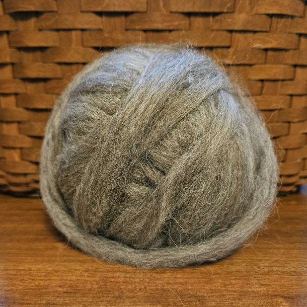 This roving is a blend of Ruby's full year fleece and Garnet's fall fleece - and it is amazing! Ruby is a much lighter gray than her sweet boy - Garnet is mostly a charcoal gray - this roving blends the two colors seamlessly into a rich color that you will love!