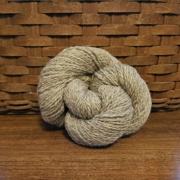 There are currently two beautiful yarns in stock. One is a soft, heathery gray fingering weight from Arwen, and the other is a luscious pale brown fingering weight from Dee Dee. These ladies spent a great deal of time and effort growing their fleeces, and they did an amazing job! Both of these yarns would make a lovely, treasured heirloom sweater for you or a loved one.